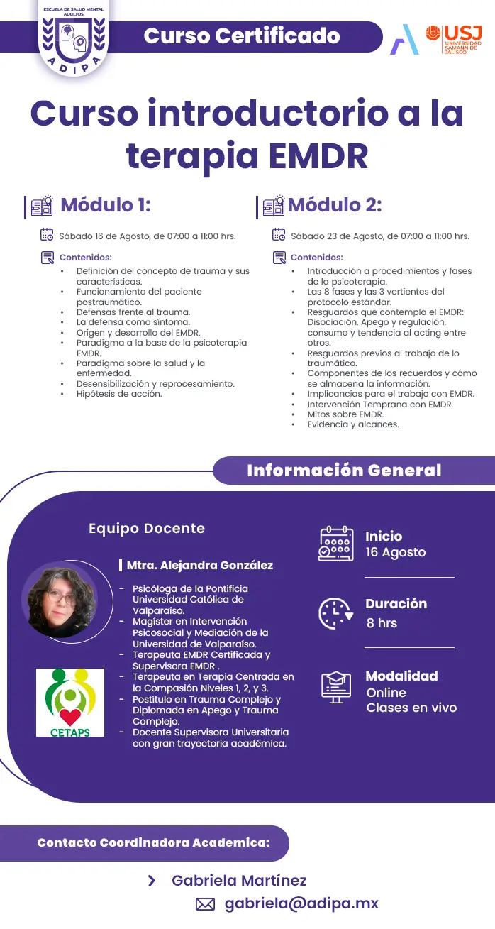 Este curso tiene carácter introductorio y no constituye una formación oficial ni habilita para la práctica clínica del modelo EMDR. Su objetivo es entregar una base conceptual y general sobre esta aproximación terapéutica.