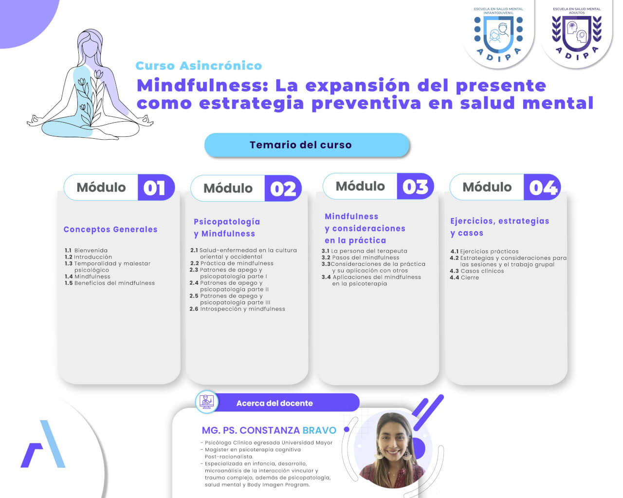 ¡Anímate a incorporarlo como herramienta clínica! Puede ser una estrategia útil para mejorar el bienestar mental y prevenir diversas problemáticas en salud mental. Este curso online sobre mindfulness, podrás comprender esta técnica a nivel teórico y práctico, con ideas concretas que puedes llevar a cabo en tus procesos terapéuticos.