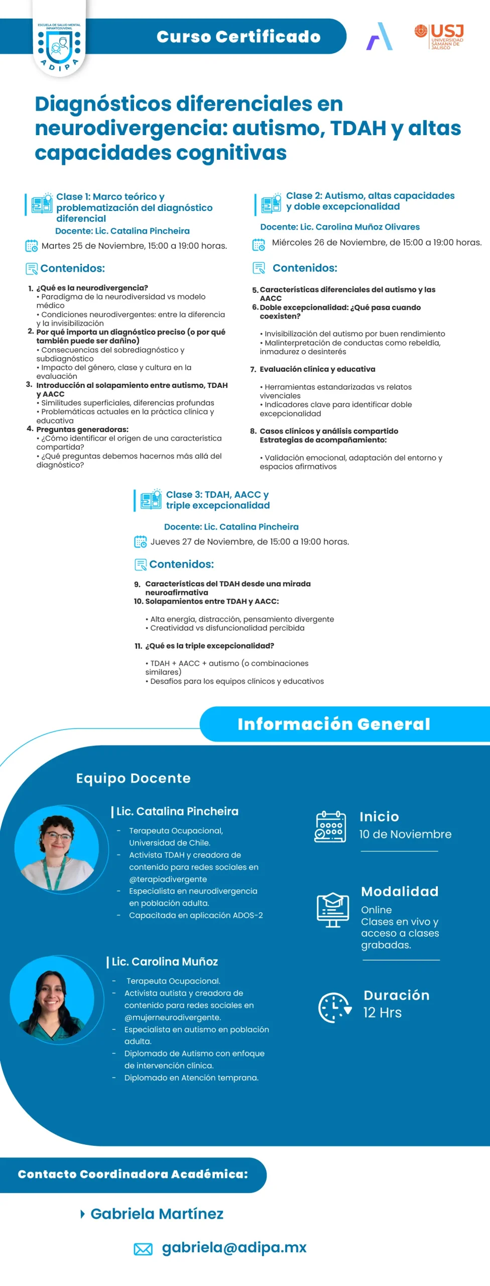 Estos desafíos tienen consecuencias directas en la vida de las personas neurodivergentes y sus familias: desde intervenciones inadecuadas y expectativas desajustadas, hasta experiencias de exclusión educativa y clínica. Comprender la especificidad y las intersecciones de estas condiciones, desde una perspectiva ética, contextual y basada en derechos, se vuelve urgente para los profesionales y comunidades educativas que acompañan estos procesos.