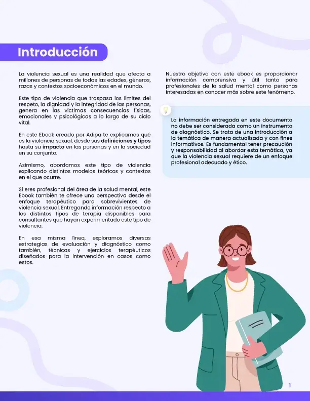 💡Como profesional del área de la salud mental, tener acceso a este ebook te permitirá enriquecer tu práctica con conocimientos actualizados y herramientas efectivas para abordar la violencia sexual en tu trabajo diario.