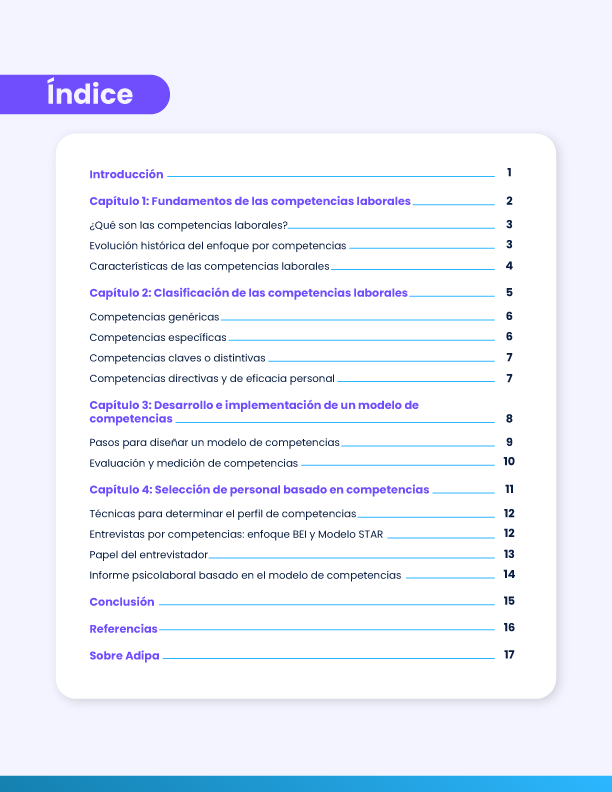 En este ebook gratuito, te ofrecemos una guía completa basada en evidencia científica y metodologías aplicadas en la gestión del talento. Aprenderás a identificar los diversos tipos de competencias, su importancia en la selección de personal y estrategias efectivas para su desarrollo.