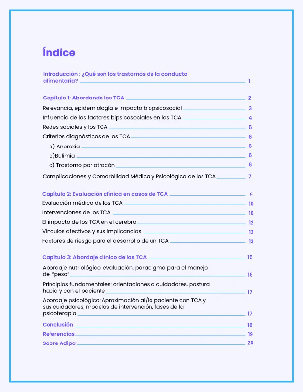 📚 ¿Qué son los Trastornos de la Conducta Alimentaria (TCA)? ¿Qué tipos de TCA existen? ¿Cómo diagnosticar un TCA? ¿Qué tratamientos se pueden llevar a cabo en esta área? Responde estas y otras preguntas en el Ebook Comprendiendo la complejidad de los TCA: Guía introductoria para el diagnóstico y el tratamiento de ADIPA.