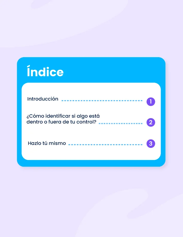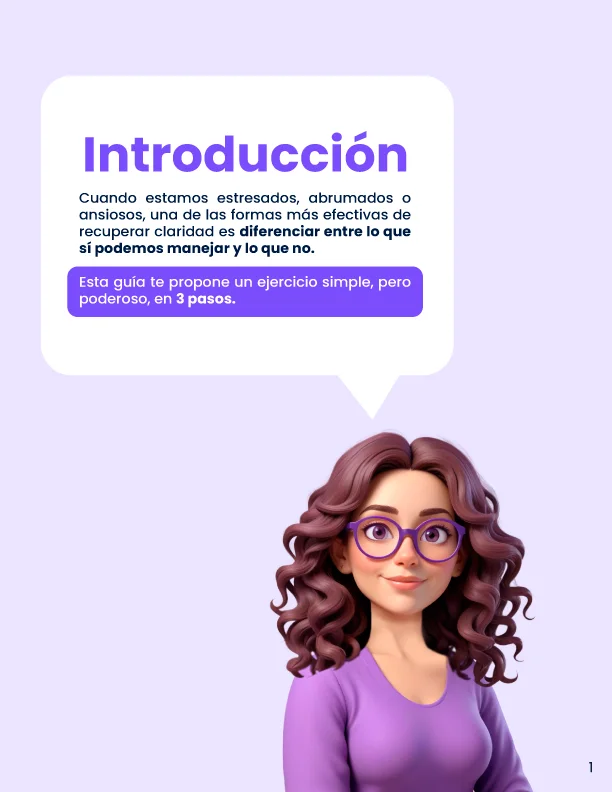 Guía rápida: ¿Cómo identificar si algo está dentro o fuera de tu control? es una guía práctica y gratuita que te invita a dar el primer paso hacia una gestión emocional más consciente. A través de un ejercicio visual en tres simples pasos, podrás aprender a separar tus preocupaciones según lo que puedes o no controlar, y redirigir tu energía hacia aquello que sí está en tus manos transformar.