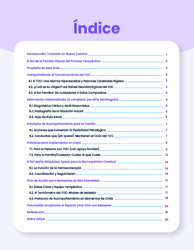 El acompañamiento en el TOC requiere una comprensión profunda del funcionamiento del trastorno y de las dinámicas familiares que lo rodean. Esta guía de ADIPA ofrece una orientación práctica y comprensible que transforma la incertidumbre en acción informada.