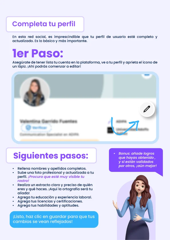 Es por esto que desarrollamos este recurso gratuito de Adipa, con la finalidad de optimizar tu perfil en la plataforma y destacar entre tus pares profesionales.