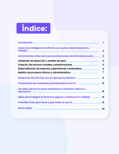 Descubre cómo aplicar la Inteligencia Artificial de forma práctica y ética en tu labor profesional. Un recurso gratuito diseñado para psicología, educación y áreas psicosociales.