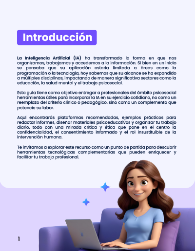 Este recurso ofrece un panorama completo de las principales herramientas disponibles, con ejemplos concretos para redactar informes, preparar materiales psicoeducativos, organizar sesiones y optimizar procesos administrativos. Todo con un enfoque práctico y ético que resalta la importancia de proteger la confidencialidad y mantener siempre el rol del profesional en el centro de la intervención.