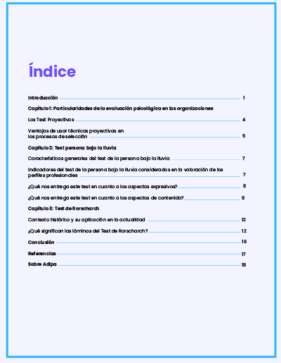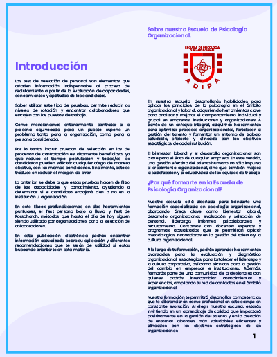 ¡Bienvenido a nuestra guía sobre herramientas de selección de personal en el ámbito de la psicología laboral! En este Ebook profundizarás en los procesos de selección dentro de una empresa y aprenderás a utilizar dos herramientas clave: el Test Persona bajo la lluvia y el Test de Rorschach. Obtén este recurso y mejora tus procesos de búsqueda de colaboradores con técnicas avanzadas de evaluación psicológica.