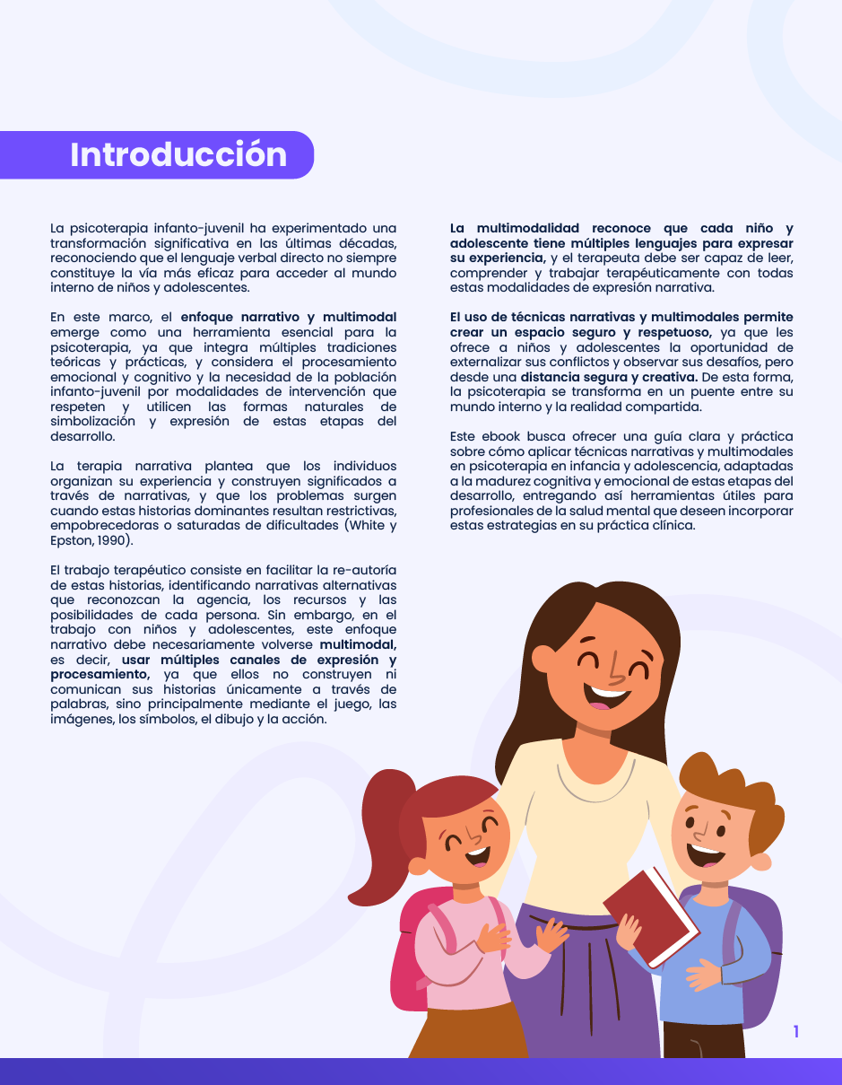 Aprende a trabajar con técnicas narrativas y multimodales en psicoterapia, diseñadas para el paciente infanto-juvenil. Este ebook reúne fundamentos y prácticas clínicas pensadas para profesionales que buscan fortalecer su práctica basada en Terapia Narrativa. Descarga gratis el recurso completo.