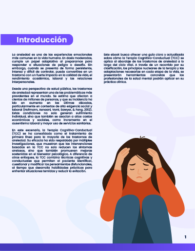 Este ebook profundiza en las bases teóricas de la terapia cognitivo conductual, revisa la clasificación de los trastornos de ansiedad según el DSM-5 y presenta herramientas concretas. Además, ofrece adaptaciones específicas para cada etapa del desarrollo, convirtiéndolo en un recurso útil para psicólogos, psiquiatras, educadores y profesionales del ámbito clínico.