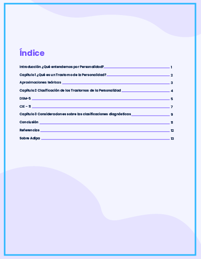 ¿Te interesa profundizar en el mundo de los trastornos de la personalidad? Nuestro ebook gratuito “Trastornos de la Personalidad: Fundamentos y Clasificaciones Diagnósticas” te ofrece una visión comprensiva de los diferentes tipos de trastornos de la personalidad, sus principales características, clasificaciones como nuevos paradigmas en los manuales diagnósticos.